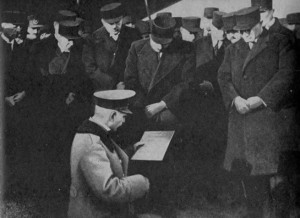 در میان حضار مرحوم مهدیقلی هدایت (حاجیمخبرالسلطنه) رئیسالوزراء سابق ایران كه از لحاظ سن و قدمت خدمت مرتبه ارشدیت داشت مرتجلا عرض كرد “ذات مقدس شاهانه چند سال قبل كلنگی به زمین زدند كه اوضاع جسمی مردم این كشور را اصلاح میكرد (اشاره او به كلنگی بود كه اعلیحضرت شاه در 1307 برای ایجاد راهآهن …